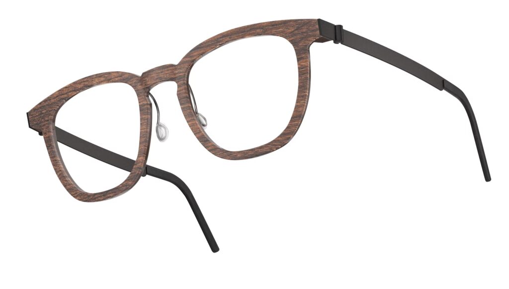 Ligesom bøffelhorn bringer træ en organisk skønhed til designet. LINDBERG anvender forskellige træsorter, hver med sin egen karakter, åretegning og farve. Fra den dybe, rige tone i røget eg til de finere nuancer i oliventræ, giver træet brillestellet en taktil og visuel rigdom. At inkorporere træ i et så præcist produkt som et brillestel kræver et utroligt håndværk, da materialet skal formes og behandles med største omhu for at sikre både skønhed og holdbarhed.