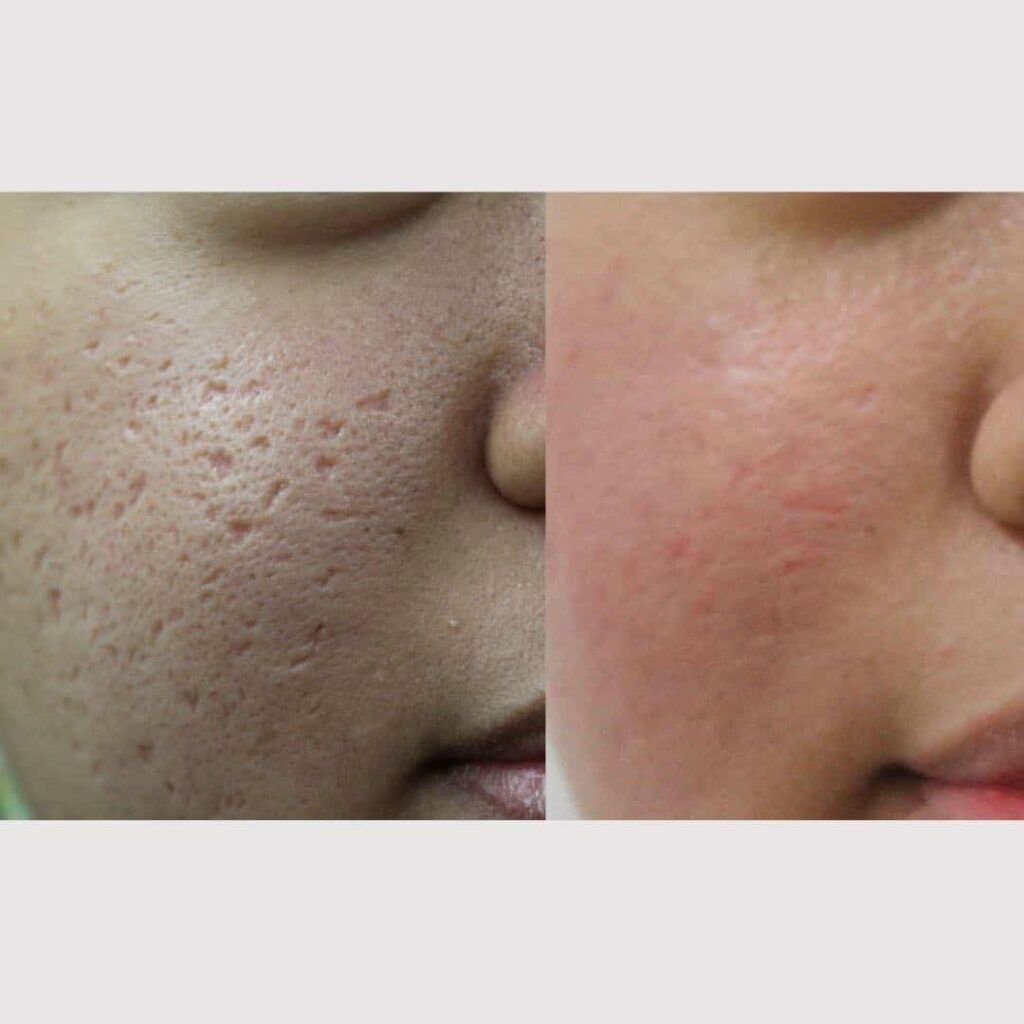 Dette kan beskrives som en "superladet" version af traditionel microneedling. Behandlingen bruger isolerede nåle til at levere kontrolleret radiofrekvensenergi (varme) dybt ned i dermis. Varmen er afgørende for optimal kollagen-omdannelse og er langt mere effektiv end microneedling alene. RF Microneedling er sikker for alle hudtyper og er særligt god til rullende ar, med en relativt kort restitutionstid på 1-3 dage.